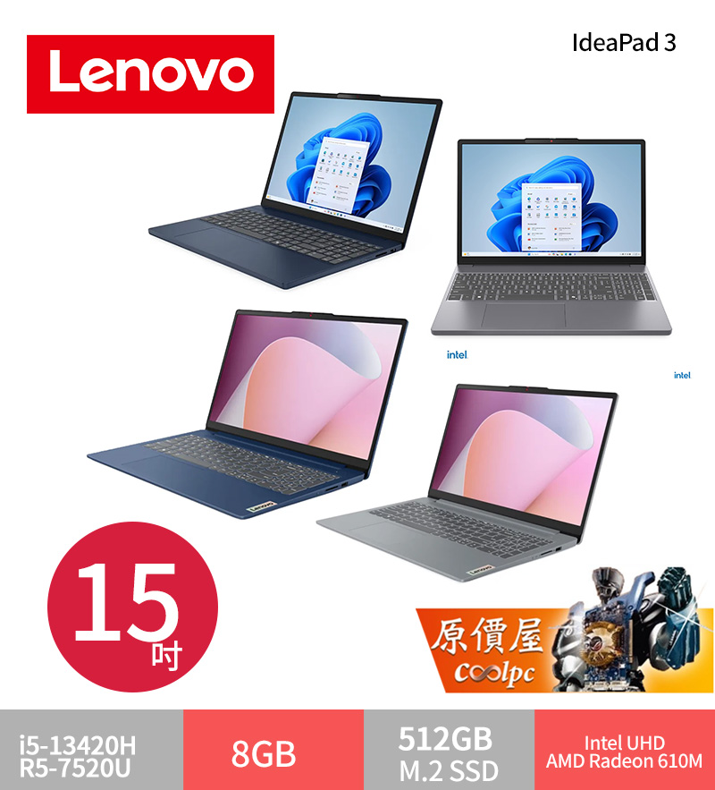 Lenovo IdeaPad 3 /i5-13420H/8G/512G/15.3吋/灰 83K100PNTW $16990>蝦皮商城>官網