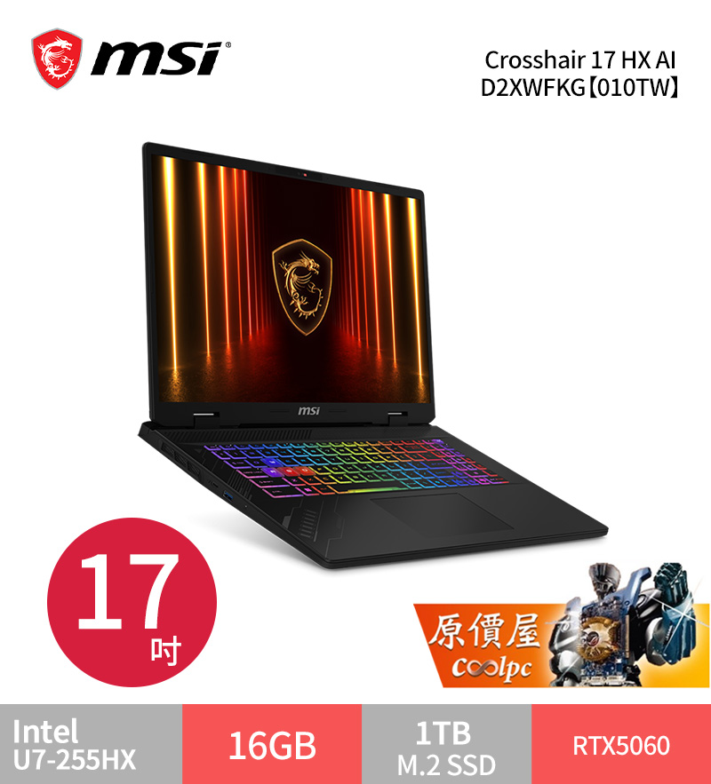 微星 Crosshair Ultra 7-255HX/RTX5060/16G/1T/17吋 黑 17 HX AI D2XWFKG-010TW$49900>蝦皮商城>官網