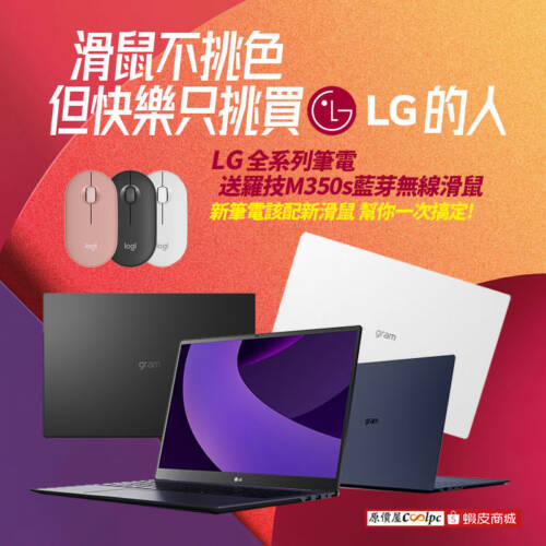 滑鼠不挑色,但快樂只挑買LG的人。LG 全系列筆電送羅技藍芽無線滑鼠!