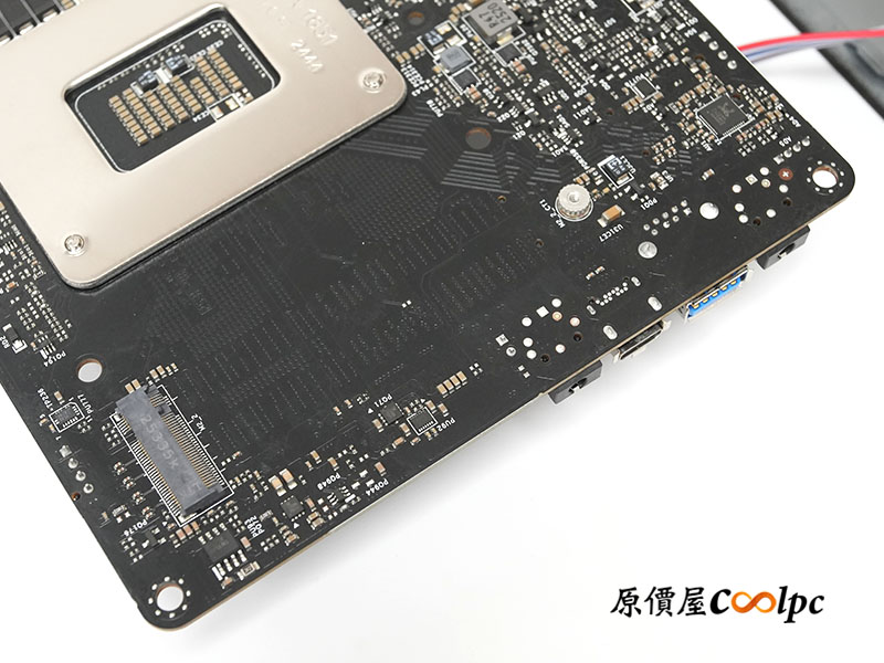 (點小圖放大)主機板型號為華擎 B860M-STX,支援 LGA1851 處理器插槽,完美對應 Intel Core Ultra 200S 桌上型處理器(65W)。主機板支援 2 x DDR5 SO-DIMM 記憶體擴充(MAX 128GB),改用 CSODIMM 記憶體模組最高可達 7200MHz(OC),往下一點則有 M.2 2280 (M2_1) 插槽,支援 PCIe Gen5 x 4 SSD,以及 M.2 2230 Wi-Fi + 藍牙模組擴充槽。
