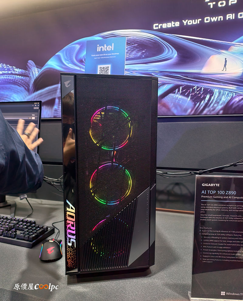 技嘉 Computex 2025攤位上也有展出這台 AI TOP 100 Z890 主機,讓使用者透過桌上型主機就能訓練專屬於自己的生成式 AI,而且全程都是在本地訓練,確保資料隱私與安全性,讓您完全掌控數據!