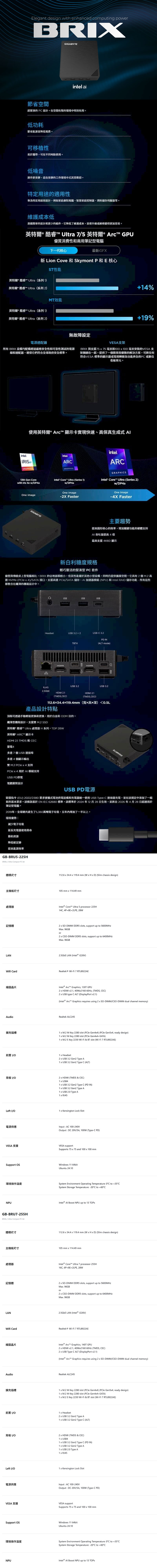 .GIGABYTE BRIX【GB-BRU7-255H】U7 255H (RAM/DISK/OS選購) 官網