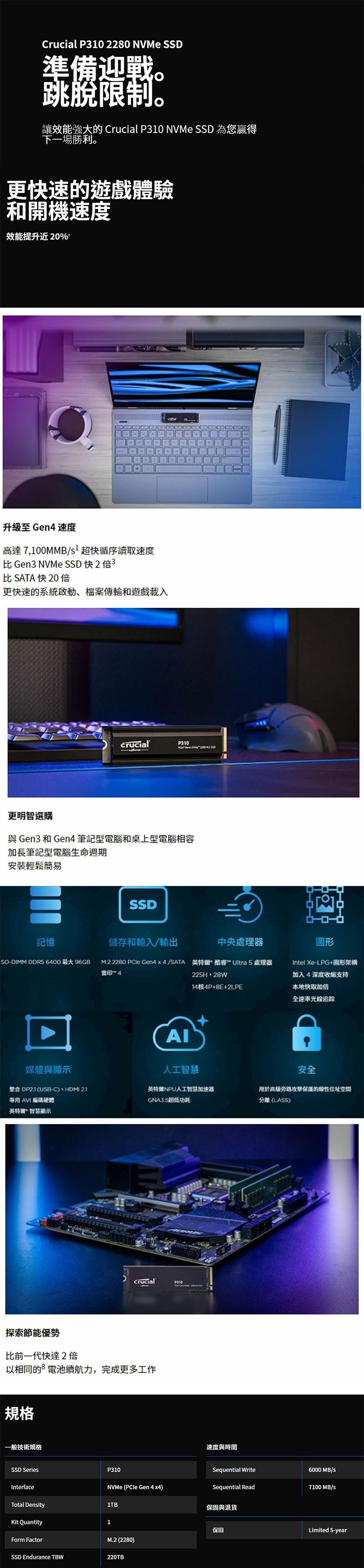 以上三項型號準系統,享加購「美光 P310 1TB SSD (J0066696)」優惠價 $2999!