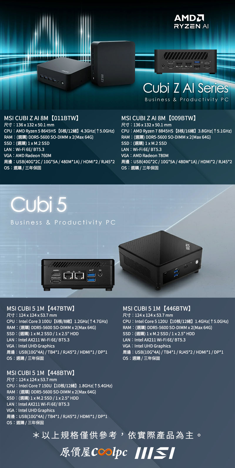 MSI CUBI Z AI 8M【011BTW】AMD R5 8645HS (RAM.DISK.OS選購), NT$14900