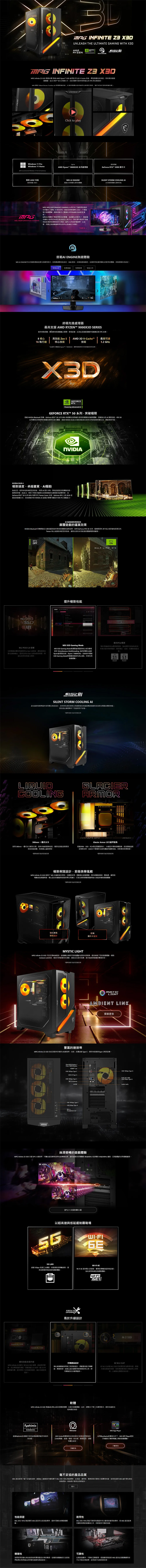 MSI Infinite Z3 7NVRR7【671TW】R7 7800X3D / 32G / 2T / WIN11 / RTX 5070Ti【訂】, $94900