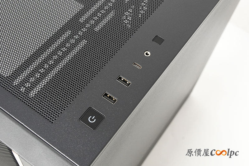 I/O 位置設計在機殼的頂端,提供了開機鈕、 USB、Type-C 以及音訊的接孔,日常使用相當便利。