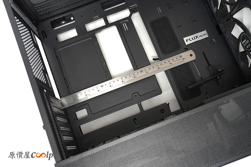 機殼背部也就是提供主要理線空間的位置。整體空間算是相當的寬裕,方便玩家的整線。