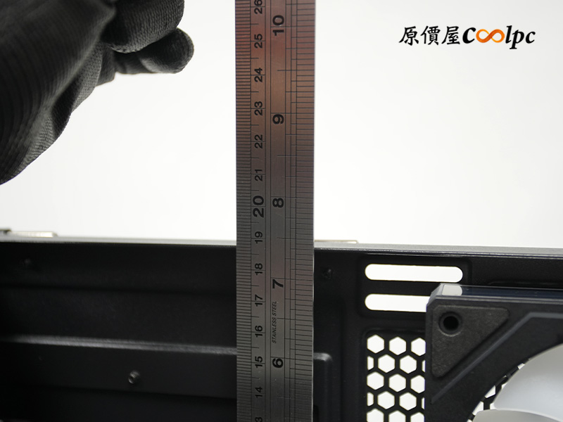 背面理線空間深達 9 公分,扣掉電源供應器的預留位置後依然相當寬敞,就算不擅長理線,要硬塞也是可以啦…