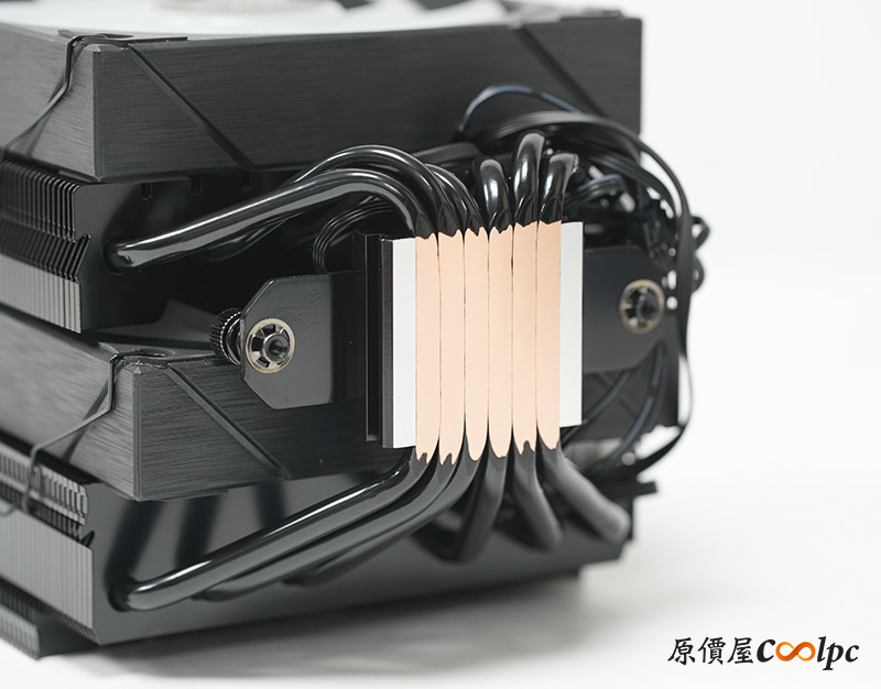 底部有六根熱管可以高效率將熱能傳導到散熱鰭片中。