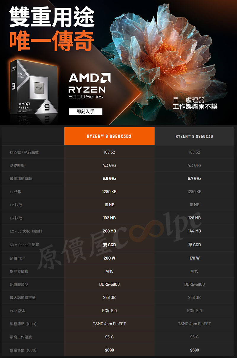 你遊戲創作封神,我送水冷!AMD Ryzen 9 9950X3D2 線上首賣開箱。