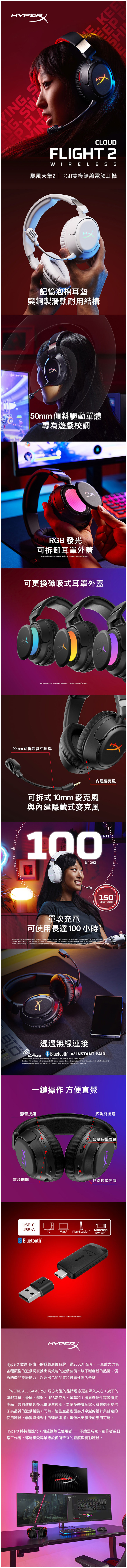 .HyperX Cloud Flight 2 無線耳麥(白)(B5VC5AA) $4490↘$4290