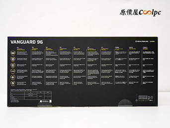 外盒依然是海盜船標誌性的亮黃配黑色,正面直接給你大大的滿版實體照!側邊清楚標示了軸體、中文鍵帽,還有大家最在意的多平台支援資訊,轉到背面則有更詳細的多國語言特色介紹。