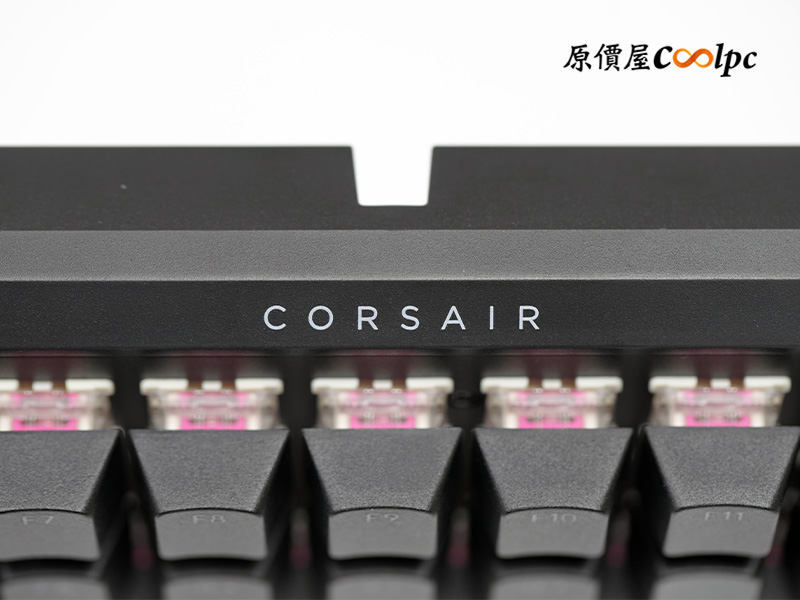 軸體採用海盜船自研的 MLX 機械紅軸,主打預潤滑的絲滑手感、高達8,000萬次敲擊壽命及熱插拔功能,觸發壓力 45g、觸發行程 1.9 mm、總行程 4.0 mm、屬於標準線性結構。