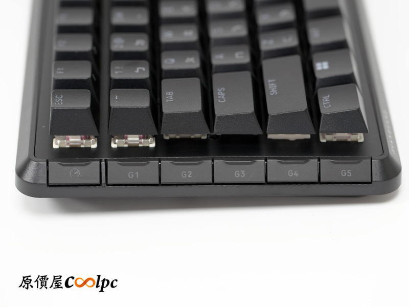左側這 6 顆按鍵就是它的最強武裝!G1 到 G5 可以直接連動 Stream Deck 搞定直播大小事,最左邊的碼表按鍵則是遊戲玩家的救星。透過 iCUE 設定,按下去就能瞬間切換到 8,000Hz 輪詢率與專屬戰鬥燈效,一鍵進入最強競技狀態。