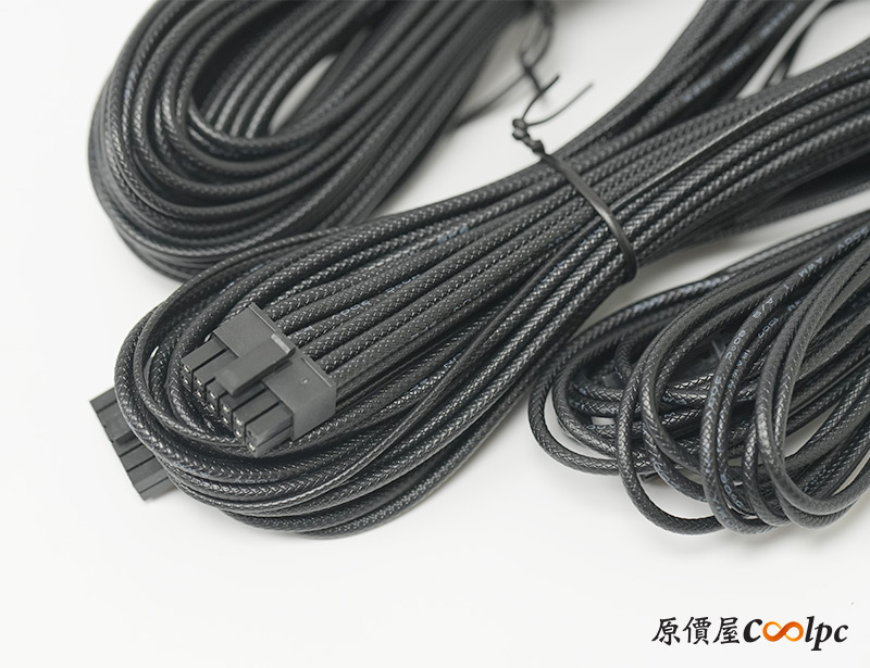 模組化線材有MB 24Pin、顯卡12V-2×6、顯卡PCIe 6+2Pin*2、顯卡PCIe 6+2Pin、CPU 4+4Pin、SATA*4、SATA*2+大4Pin*2。比較意外的是PCIe 6+2Pin與SATA電源的部分數量相對少,不過大多數情況都還是夠用,建議玩家們在選購零件的時候特別留意一下。