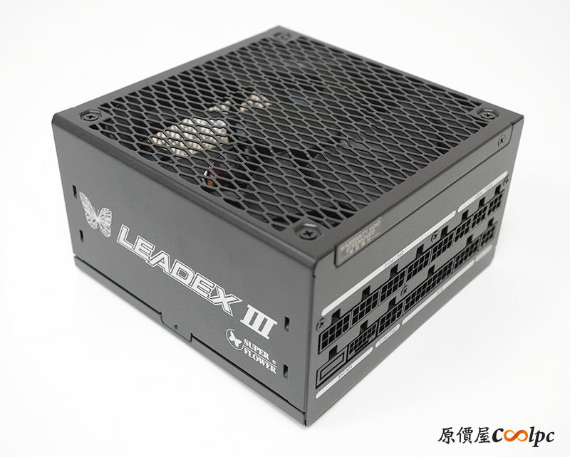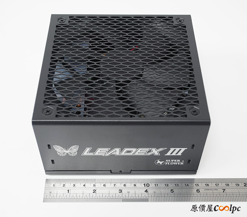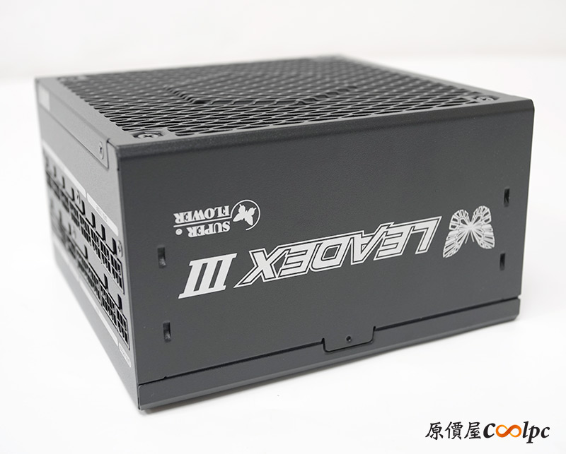 接著看到LEADEX III 850W電源本體,尺寸150*150*86mm(L*W*H),長度150mm可以算是短身型的電源了。側邊放上振華LOGO、招牌的蝴蝶、LEADEX III字樣,看上去相當有辨識度,黑色外殼搭配白色字體,整體設計走簡約路線。
