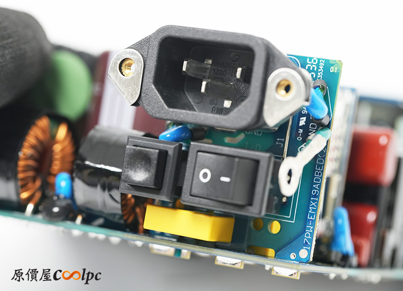 後方是POWER CORD插孔,還有電源翹板開關,以及剛剛提到的風扇ECO模式按鈕,其餘面積也是幾何造型孔洞輔助散熱。