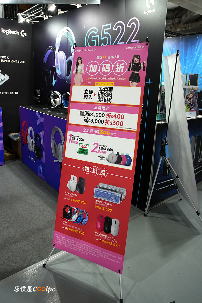 那麼這篇我就先來介紹這回「羅技 X 原價屋」的限定優惠活動,真的是火力全開啊!直接把戰場拉到現場,聯手羅技電競周邊,端出一整排「要排、要搶、錯過不再」的夢幻清單!這不是網路抽號碼,是現場排隊、現場秒殺、現場見證價格奇蹟的那種刺激!首先,所有 FPS 玩家心中的那支「G Pro X Superlight 2」,直接從 $5490 砍到 $3290,黑、白、桃紅三色全到齊,每色限量 30 支!想再甜一點嗎?「Superlight 2 SE」版本也不缺席,$3990 直降 $2990,同樣三色齊發!這價格,已經不是該不該換滑鼠,而是排不排得到的問題了。另外,經典不敗派系也準備好站出來,「G502 Lightspeed」無線遊戲滑鼠直接殺到 $1990,對於喜歡重量感、多鍵位、全能操作的玩家來說,這一檔真的可以衝了。而鍵盤黨更是本次活動的大贏家,從入門到旗艦一次鋪好鋪滿!「G512」機械式鍵盤三種軸體通通 $1880!RGB、鋁合金上蓋、耐用度全都在線~想直上信仰級?「G915 X」無線機械鍵盤與「G915 X TKL」全系列限量登場,茶軸、紅軸、青軸任選,最高直接現省兩千!還有職業選手愛用的「G Pro X Lightspeed TKL」無線機械鍵盤,黑白桃紅全色到齊,$6990 直降 $4990!這已經是冠軍級別的價格了。美型玩家也沒被遺忘,「G713」炫光機械鍵盤直接 $1990 入手,再搭配同系列「G735」無線 RGB 耳麥,讓桌面顏值與戰力同步拉滿~想要輕量、舒適又無線?「G535 Wireless」電競耳機也給你 $2690 的超甜價。最後再補上一刀狠的!12/18 當日限定,經典初代「G Pro X Superlight」黑、白、桃紅色全數 $1990 開賣,限量、限時、限當天,錯過真的只剩傳說。這次 2025 GAMFORCE X 原價屋現場,沒有保留、沒有客氣,只有真正給玩家的誠意價格。裝備升級、信仰補滿,就等你親自來了,來搶、來把神裝帶回家吧!當然除了這篇羅技之外,還有滿滿其他品牌的驚喜等著你!快來參考 2025 GAMFORCE 超優惠促銷懶人懶人包!下方也有這次羅技活動的大集合列表喔~