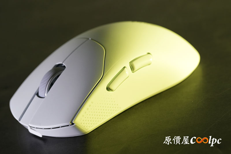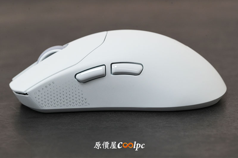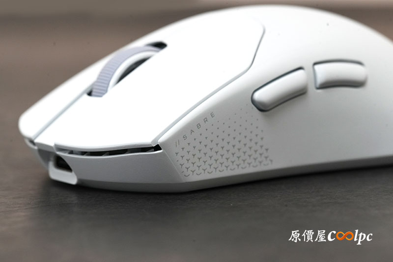 「SABRE V2 Pro Ultralight」白色外型乾淨俐落,搭配簡約線條設計,走的是低調專業風格,而非過度電競化的外觀。