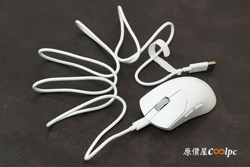 滑鼠本身設計相對低調,主要集中在 Logo 區域,符合整體簡約風格。