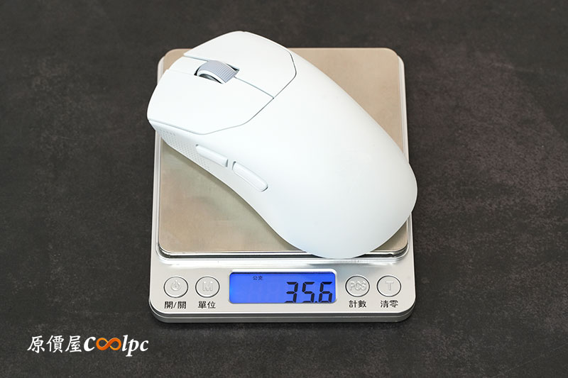 實測重量約 36g,幾乎是目前主流電競滑鼠中的極致輕量等級,大幅降低操作負擔。