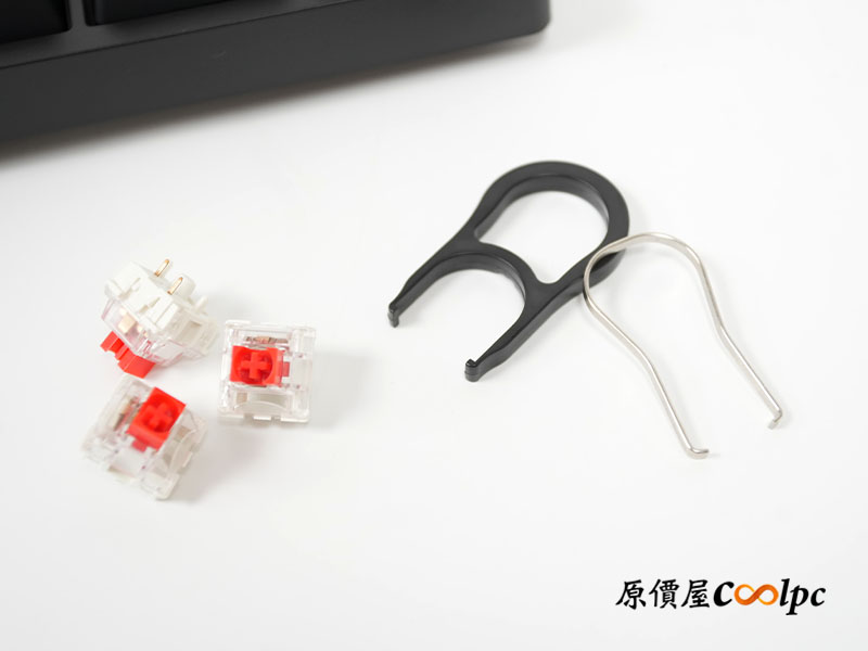 內部包含鍵盤本體、備用軸體、拔鍵器、拔軸器、以及使用說明書。