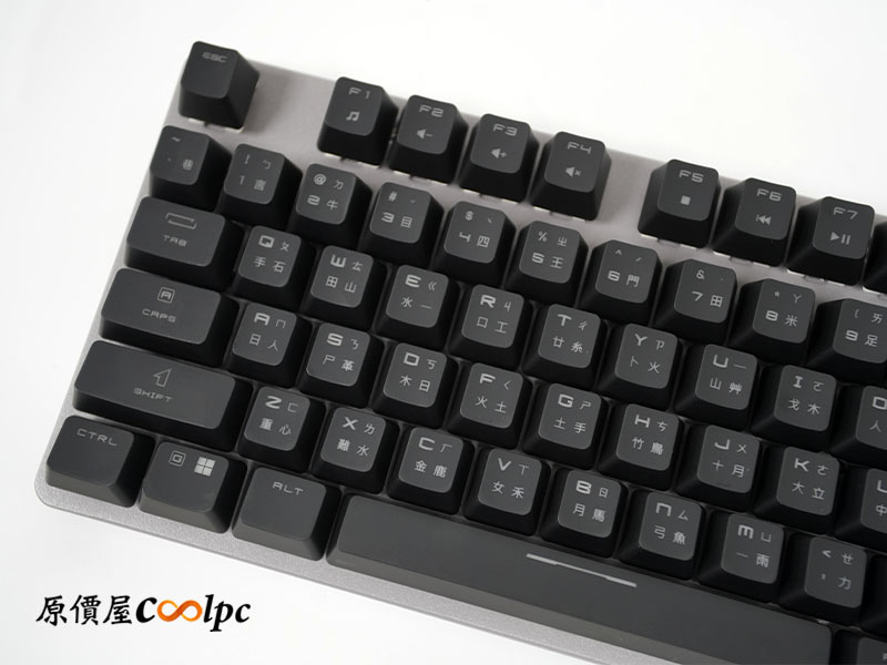 鍵帽採用 ABS 雙色注膠的不破孔工藝,字體可以完整透光,燈效更均勻漂亮,長期使用也不怕磨掉字根。