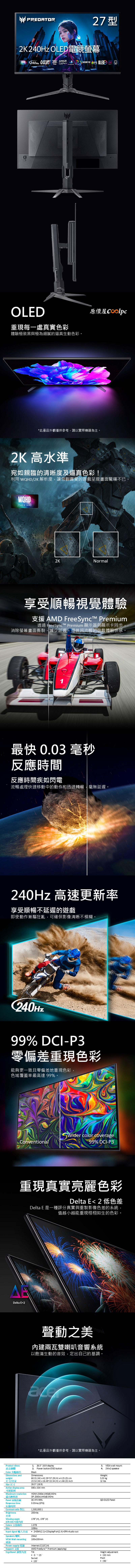 Acer Predator X27U W3〈2H1P/OLED/240Hz/含喇叭/HDMI 2.1〉,$11999↘$9999