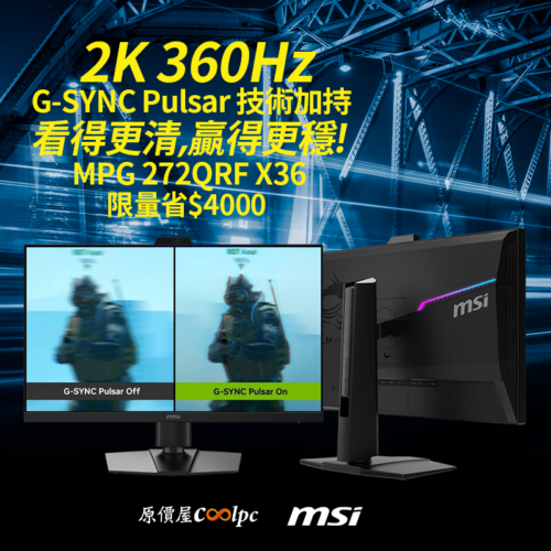 對於FPS玩家來說,微星MSI MPG 242R X60N電競螢幕絕對是最好的裝備,各方面性能都是為了幫助你發揮實力設計,尤其當對手都還在180~240Hz遊走,就算360Hz都相形失色!但相對地,電腦的規格也不能太差,起碼有個NVIDIA GeForce RTX50/ AMD Radeon RX90系列顯卡是基本,處理器Intel Core Ultra/ AMD Ryzen 9000更合適,前不久剛上市的AMD Ryzen 7 9850X3D更推推,主機夠力才能推動螢幕性能嘛。現在原價屋搶先幫大家爭取到螢幕好康,這台MSI MPG 242R X60N直接便宜$5000元,只要$14900元就能買到了,600Hz這樣的價位和其他家比起來,其實還滿划算的,有興趣的朋友敬請把握機會,活動限時兩週售完為止喔。