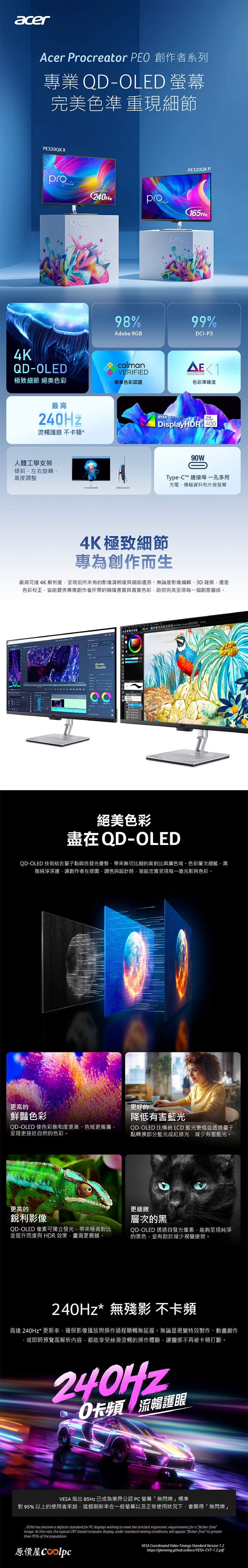 Acer ProCreator PE320QK X〈2H1P1C/OLED/240Hz/含喇叭/HDR400/專業色彩認證〉, NT$32,980