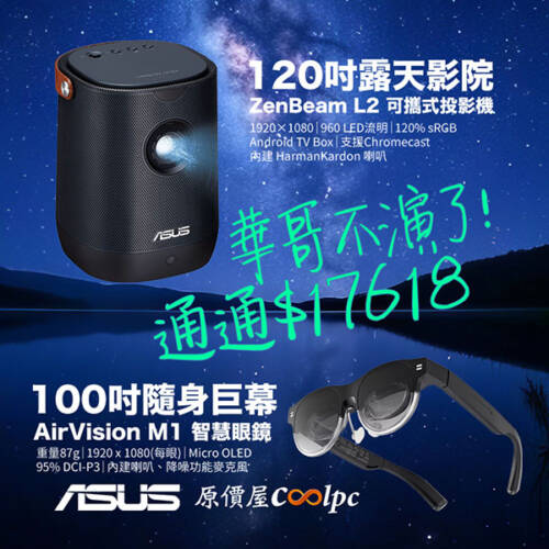 >>去原價屋蝦皮商城下單(ProArt Projector A1 / ZenBeam Latte L2 / AirVision M1)