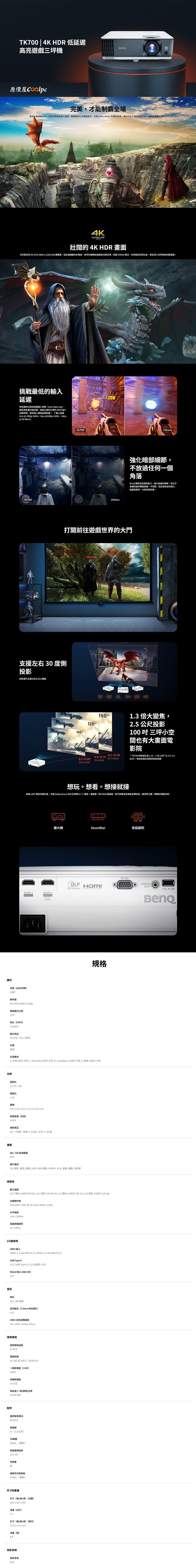 活動商品:BenQ明基 TK700 低延遲高亮遊戲投影機 $29900