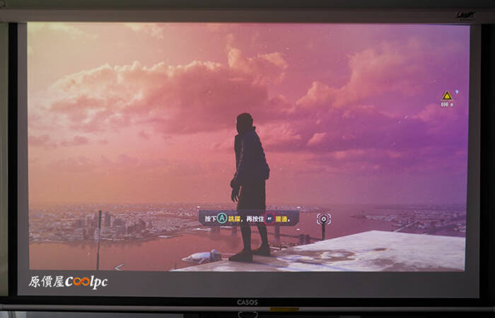 接著是接電腦玩 Cyberpunk 2077 和蜘蛛人以及觀賞 youtube,照片是陰天自然光後的投影效果,2000 流明度效果還不錯,但想要更好的體驗,還是建議燈光全暗下會比較好。