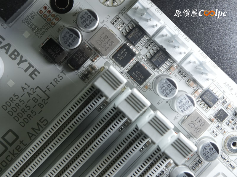 記憶體旁還有除錯燈號 (Debug LED),讓專業 DIY 玩家在進行硬體除錯或超頻設定時,能第一時間精準掌握系統狀態。