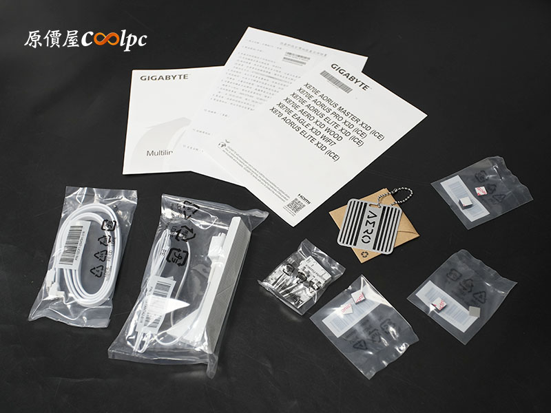 (點小圖放大)不愧是頂級旗艦的技嘉 X870E AORUS XTREME X3D AI TOP,光從配件的多元性就能略知一二。除了必備的說明書與 SATA 線材、Wi-Fi 7 天線,以及…