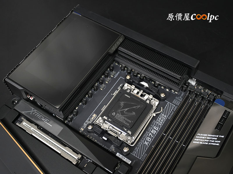 最後讓各位看一下那夠氣派的 DDR Wind Blade XTREME 散熱模組和 M.2 Thermal Guard XTREME 散熱器裝上的樣子。選這張主機板必配海景房吧!