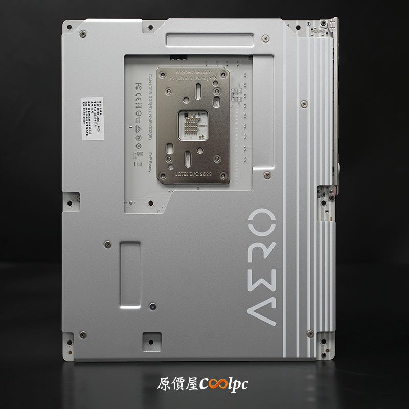 前置 I/O 共提供 HDMI、USB 20Gbps(Type-C)、 2 組 USB 10Gbps 擴充。同時可以看見 M.2 散熱片的末端都有一塊 AERO 皮革拉環,配合 M.2 EZ-Latch Click 與 M.2 EZ-Latch Plus 免螺絲快拆設計,不僅美觀,在 DIY 組裝上更省時省力。