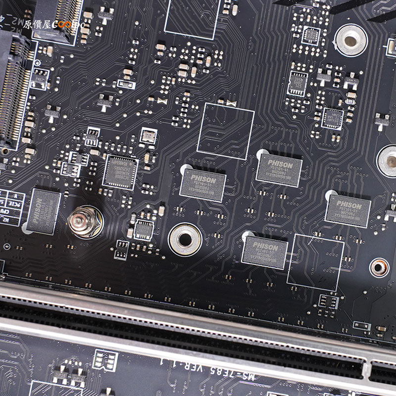 背面的部分有多一塊強化結構裝甲,同時也可以幫忙供電模組散熱,下半部也有一個 M.2 SSD 插孔。