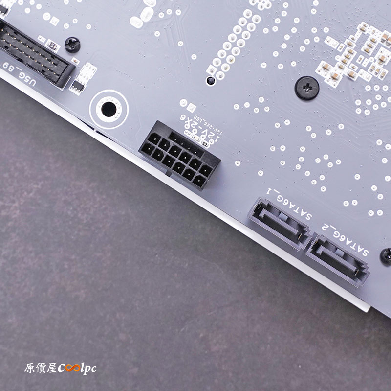 只要看到主機板有 BTF 三個英文字,肯定就是背插式主機板了!主機板為 ATX 規格設計,並且用了一塊白色造型遮蔽將部分零件覆蓋起來,讓整張板子看起來更乾淨一致!