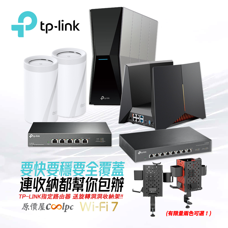 這年頭升級網路,如果只是小小的變快,那已經真的不夠看了啦~現在流行的是速度升級+桌面整理一次到位!這次這波由 TP-LINK 帶來的限時活動真的很懂玩家心聲~現在只要來原價屋入手指定高階路由器設備,就直接送你一組「Raymii GameArm LGR-8 旋轉四面洞洞板收納架」!讓你的網路環境與桌面整潔同步升級,從此告別線材地獄!這次活動主打的幾款產品「Archer GE800」、「Archer BE805」、「TL-SX1008」、「TL-SX105」、「Deco BE85」,幾乎清一色都是 Wi-Fi 7+10GbE 等級的怪物,但也是需要 Wi-Fi 7 全面開火,速度才會直接開外掛!而這次的活動贈品送的「Raymii GameArm LGR-8 旋轉四面洞洞板收納架」也完全不是湊數贈品。它可是擁有四面旋轉設計、洞洞板自由配置,以及電競風黑/紅黑配的超級贈品!簡單說,它不只是收納架,是你的桌面救贖神器啊!反正總結一句話… 這次你不是單純買網路設備,而是一次升級整個使用體驗!如果你本來就打算升級網路,那這波真的就是買設備送質感生活,不上車真的會後悔!