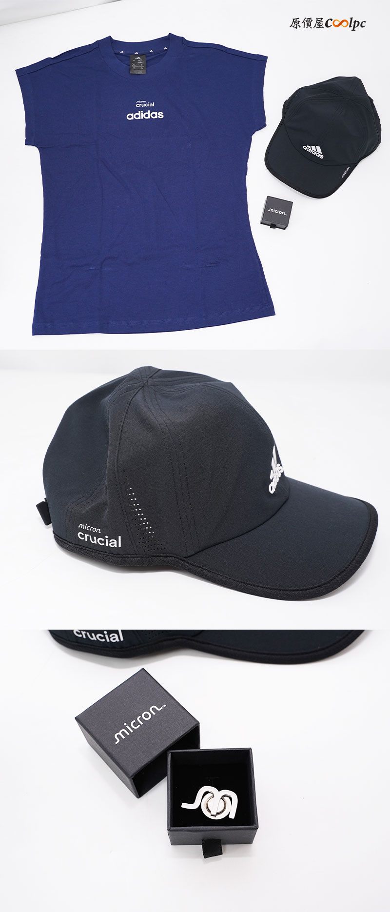 女:愛迪達的T恤、帽子、美光磁吸名牌