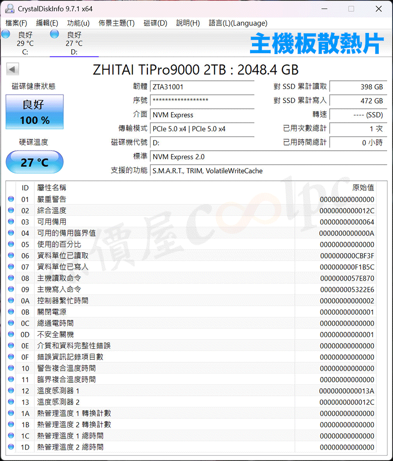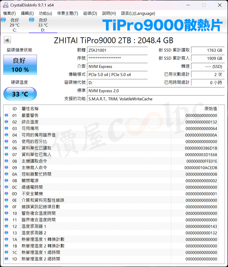 致態ZhiTai TiPro9000 2TB/Gen5/PCIe 5.0/讀14000/寫12500/DRAM/TLC【五年保】, $8999