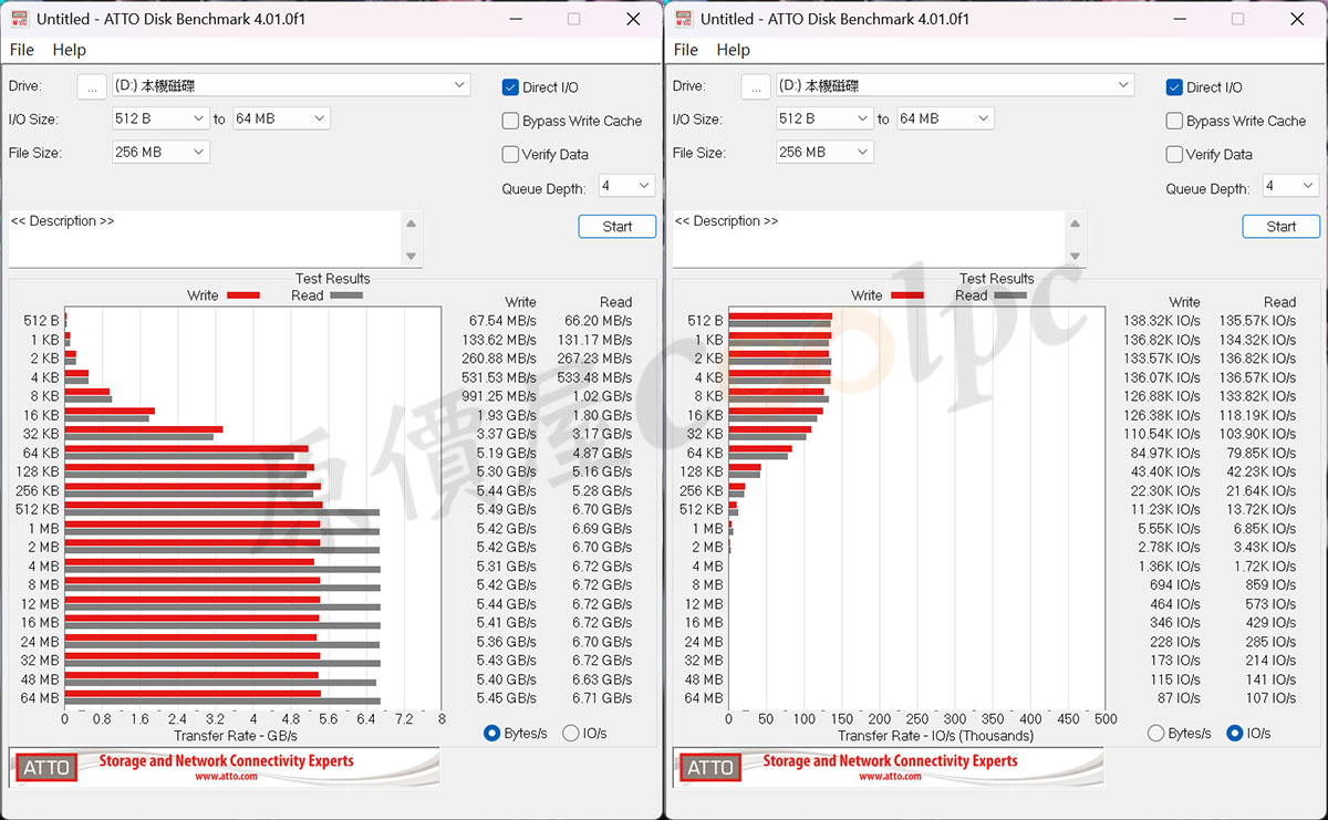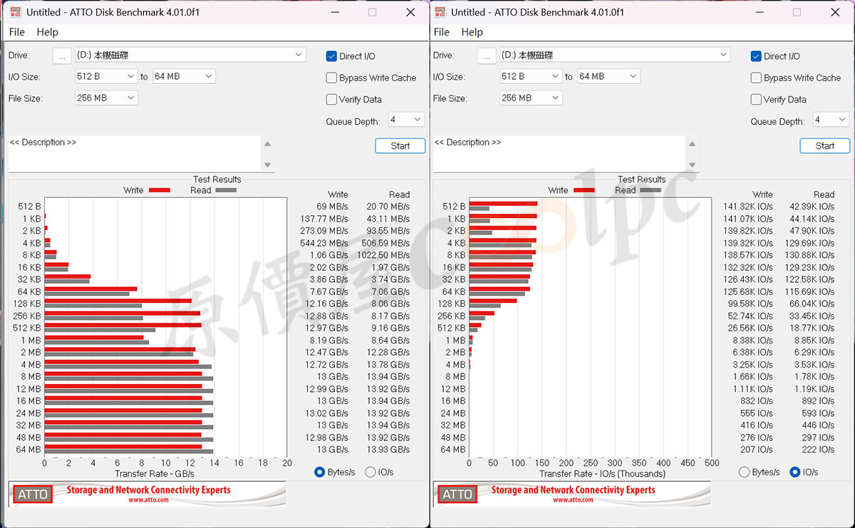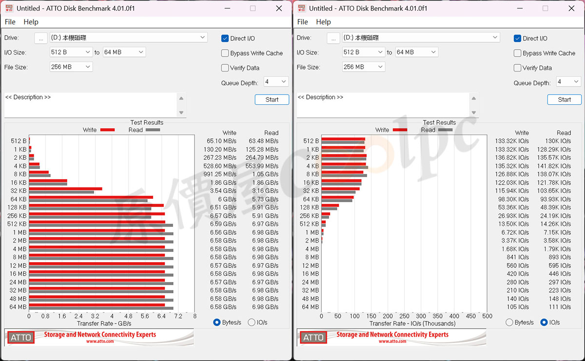 (點圖放大)ATTO Disk Benchmark 測試結果。