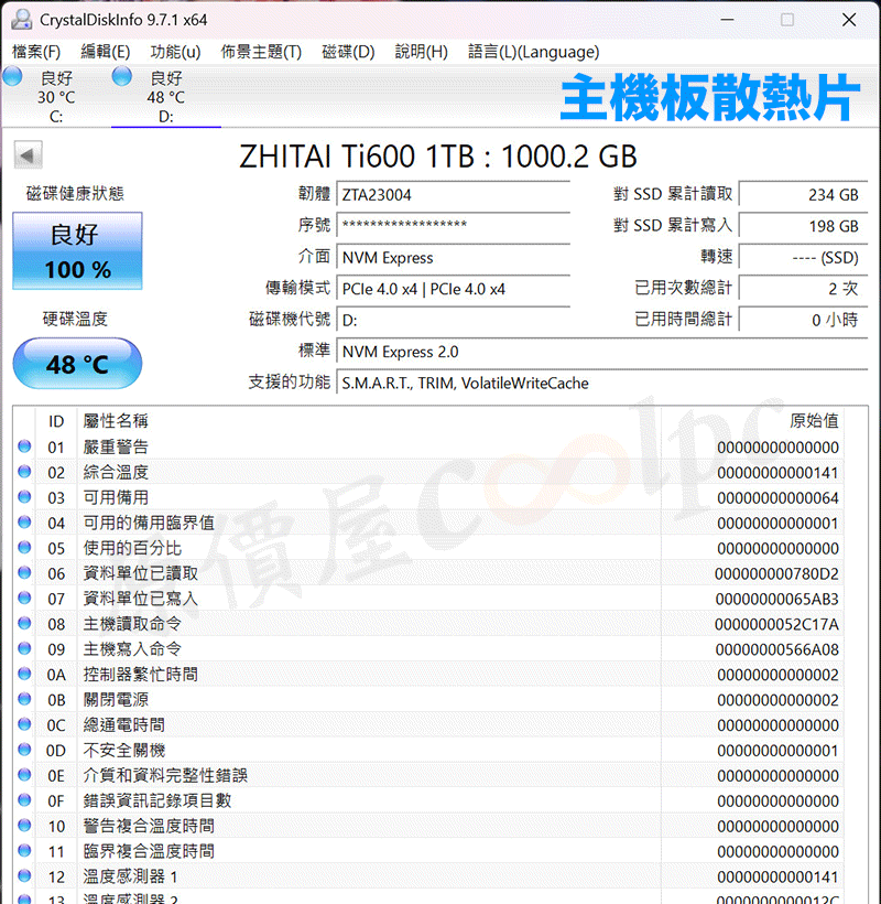 致態ZhiTai Ti600 1TB/Gen4/PCIe 4.0/讀7000/寫6000/QLC【五年保】, $4199