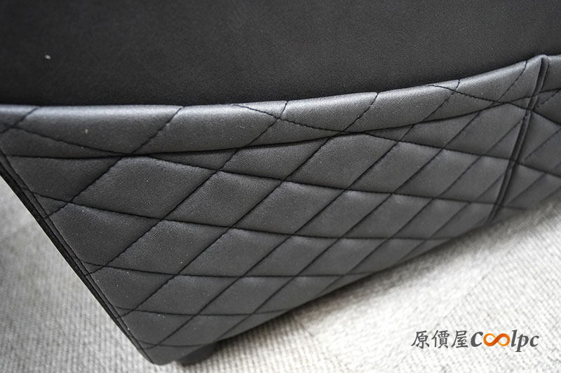 大面積的菱格紋收納袋,可放置遙控器、手把、手機等小物,實用性滿點。