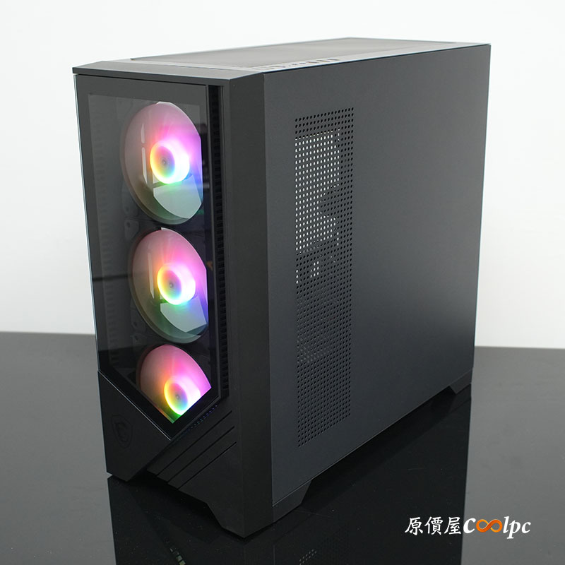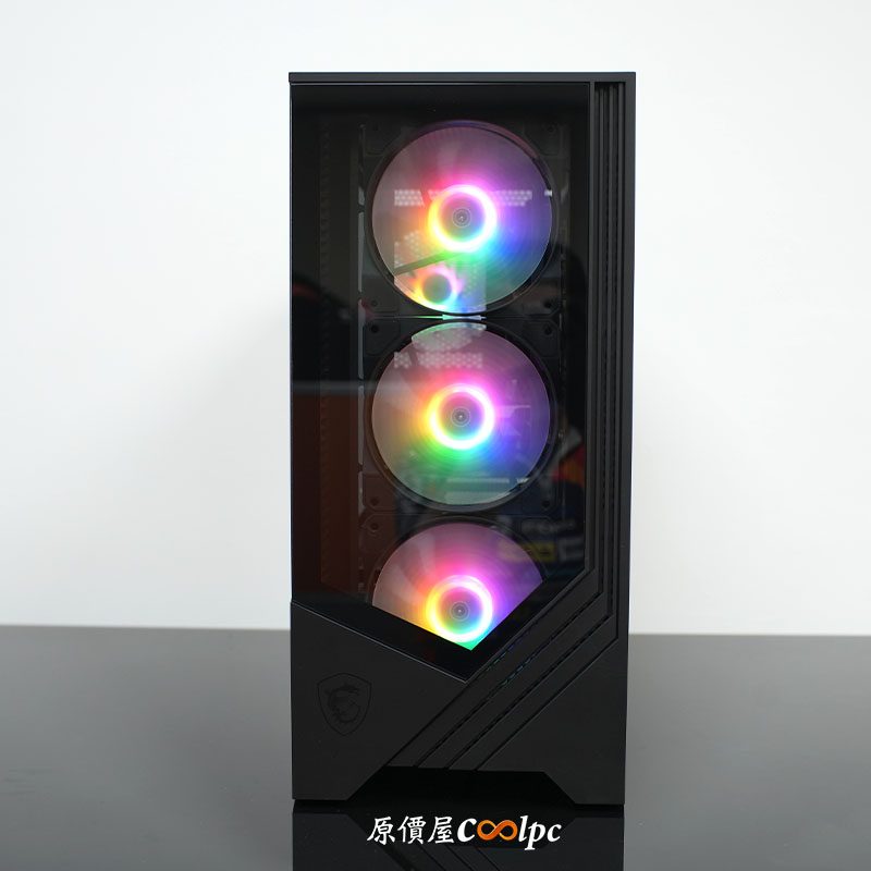 * 微星 PAG FORGE M100L 機殼:前 + 側雙玻璃面板設計,兼具質感與未來感,讓「雪螳螂」的動感視覺一覽無遺!內建 4 顆 ARGB 風扇,不僅質感加分,散熱效率也幫你做好做滿!不論是擺在桌面還是地上,都是全場注目的焦點!
