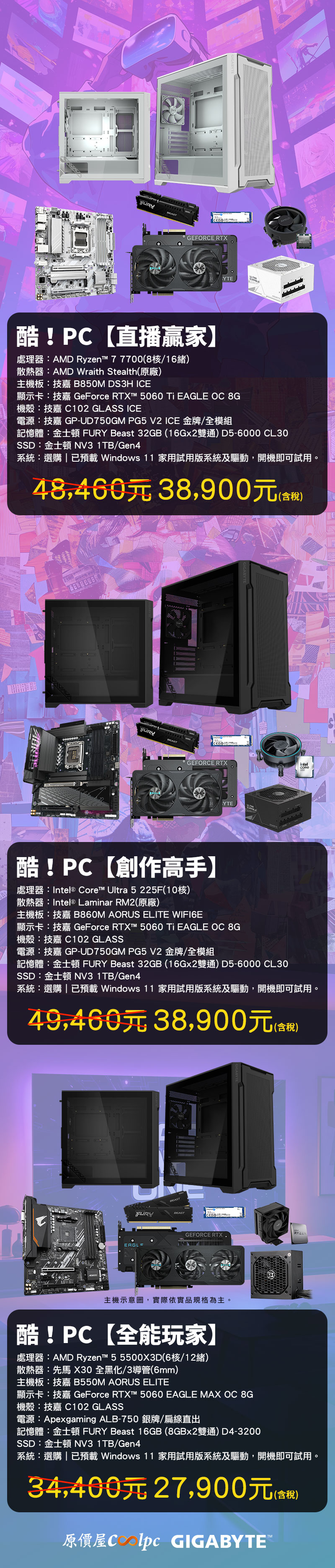 酷!PC【全能玩家】NT$34,400↘NT$27,900|限量 100 台